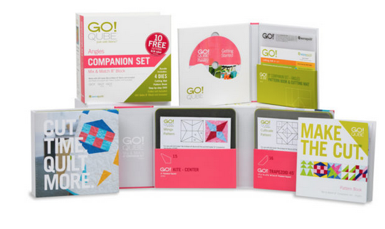 The 8″ Companion Set includes four angled shapes, a cutting mat, an instructional DVD, PLUS a FREE 24 page pattern booklet which includes 10 Mix and Match block patterns.
