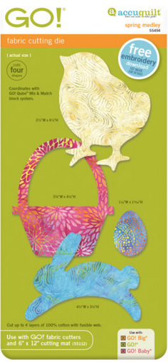 This cute GO! Spring Medley die is perfect for creating Easter, spring or baby- themed projects! The Bunny, Chick, Basket and Egg applique shapes are a must have for any collection!